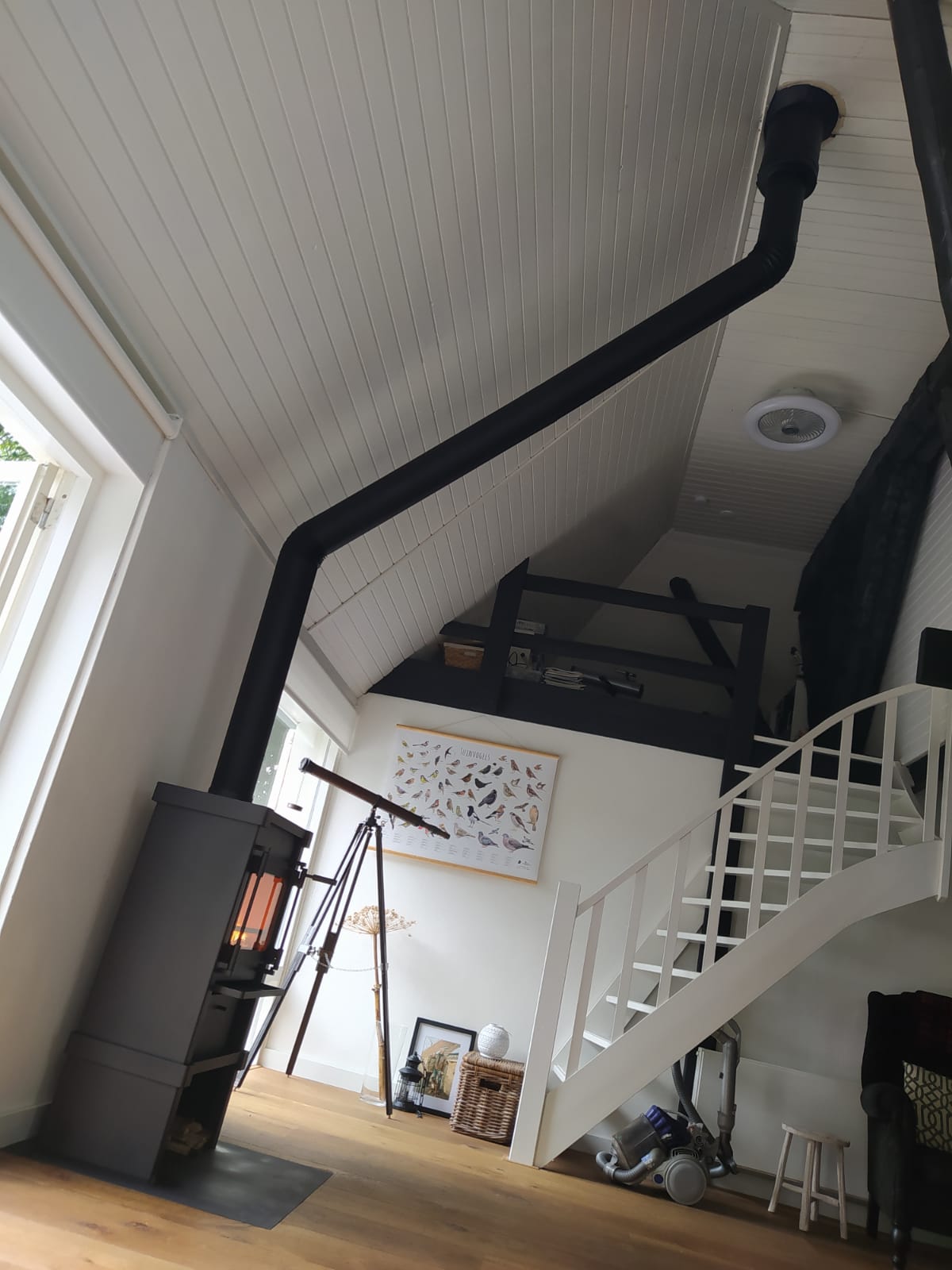 Zoals je ziet zijn er tal van mogelijkheden om een kachel te plaatsen, zodat ze ook hier in Smalle Ee kunnen genieten van een knisperend haardvuur. De Woodstacker onder de kachel biedt voldoende ruimte om netjes en sfeervol een voorraadje hout onder de kachel te leggen.