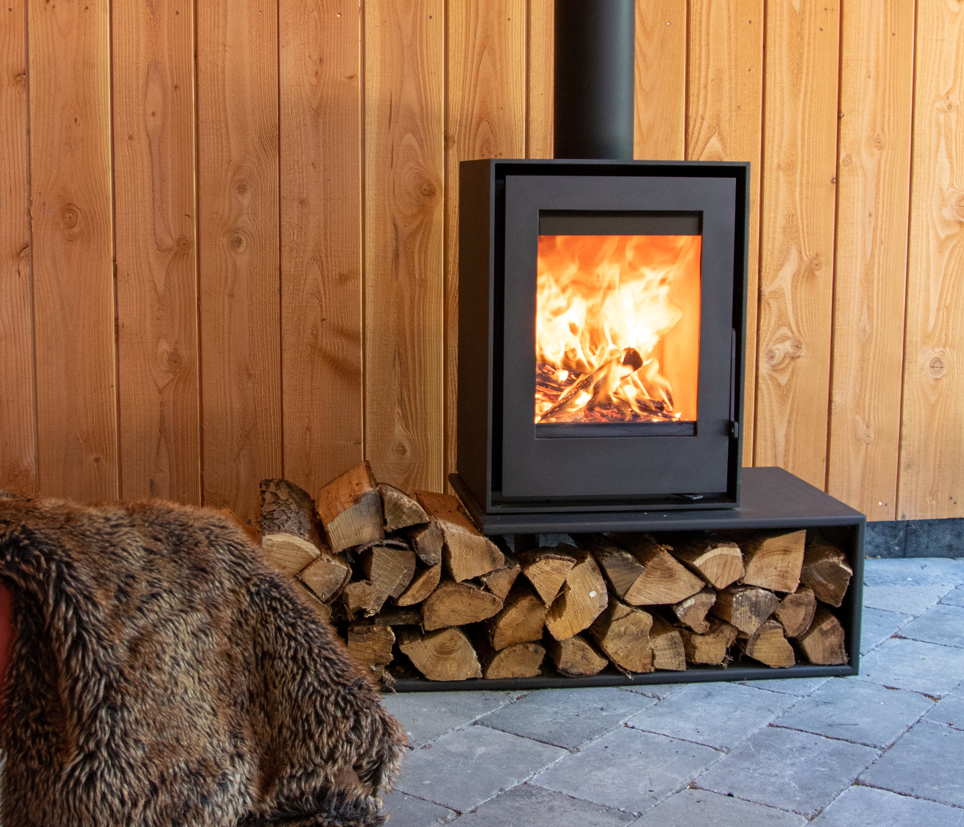 De Beaufort Match is natuurlijk erg leuk te combineren met verschillende Matchboxen, maar ook een zwevend plateau gevuld met hout geeft een leuk effect! Hier sfeervol opgesteld onder een overkapping voor lange avonden met waardevolle gesprekken bij het haardvuur. Geen zin om te praten? Het mijmeren en staren in de prachtige vlammenzee gaat je echt nooit vervelen. Niets zo mindful als een rustige avond bij een vuurtje. Dankzij de techniek van de Match hoef je niet vaak hout bij te vullen en kan je je echt verliezen in het vlammenspel.