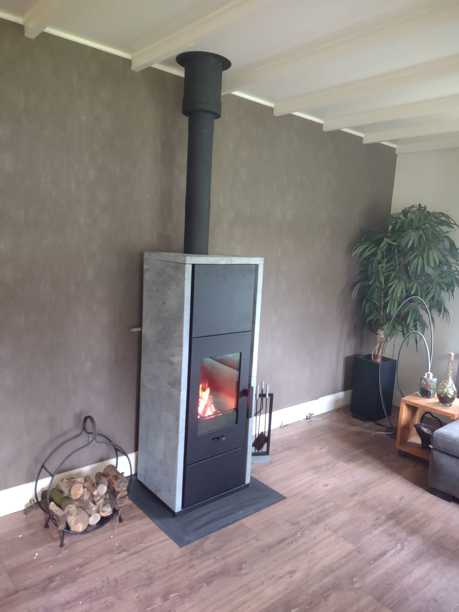 In Noord Sleen zitten ze er warmpjes bij met deze Wanders Pecan Eco L houtkachel. Het speksteen om de kachel houdt de warmte vast, zodat ze lekker lang kunnen genieten van de warme straling.